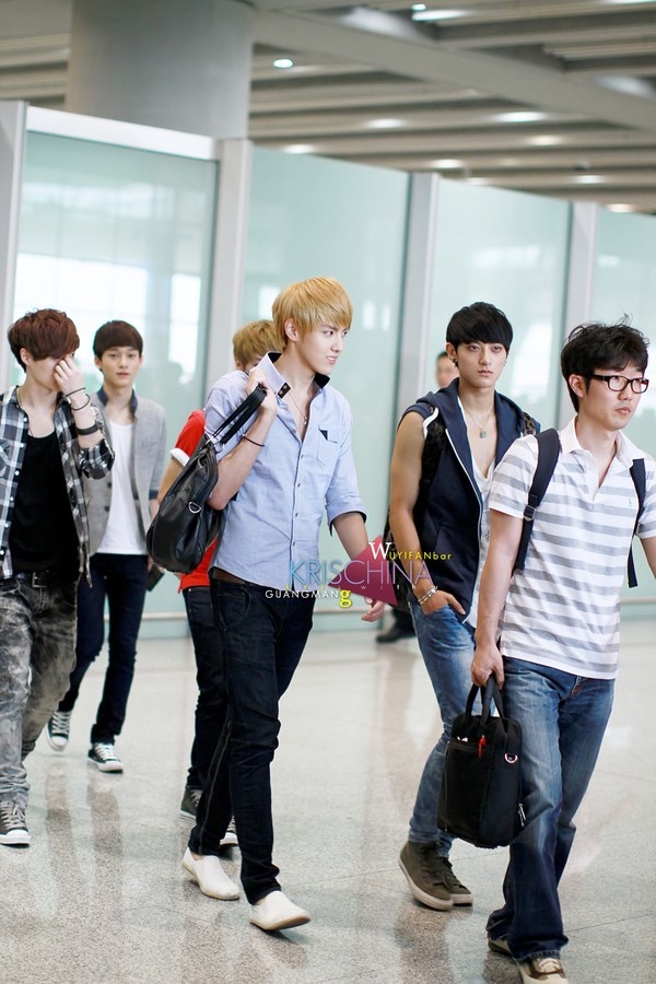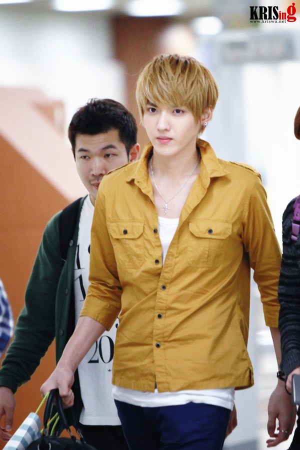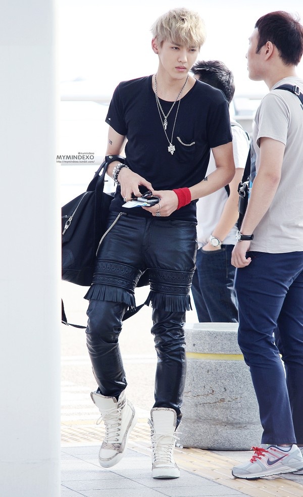 | Khi đã chán những trang phục chỉn chu, nam tính, anh chàng không ngần ngại thể hiện cá tính khác lạ qua những trang phục lạ mắt vô cùng. Một số thời trang sân bay của Kris gây tranh cãi, số còn lại được thẳng thừng xếp vào dạng "thảm họa thời trang" của Kbiz. Ấn tượng khó quên nhất của Kris dành tặng cho fan là chiếc quần với phần đũng dài thượt, họa tiết chấm bi quá sức nữ tính. Kris mạnh dạn kết hợp thêm với áo họa tiết đầu lâu, nhằm tạo nên một trang phục xấu không đỡ nổi. |