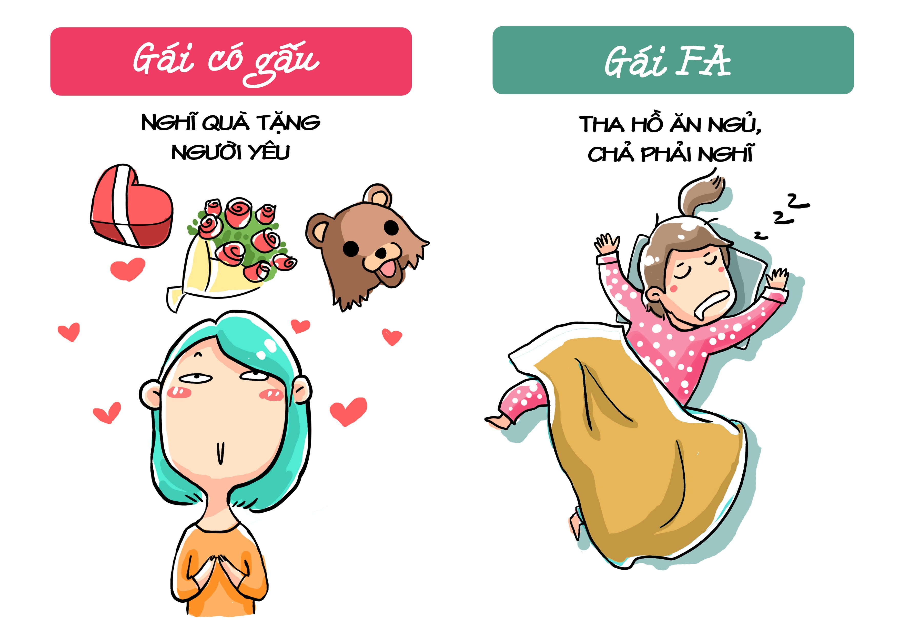 | Nếu như các cô gái đã có đôi có cặp thường đếm từng ngày chờ đến Valentine thì dân F.A hoàn toàn ngược lại. |