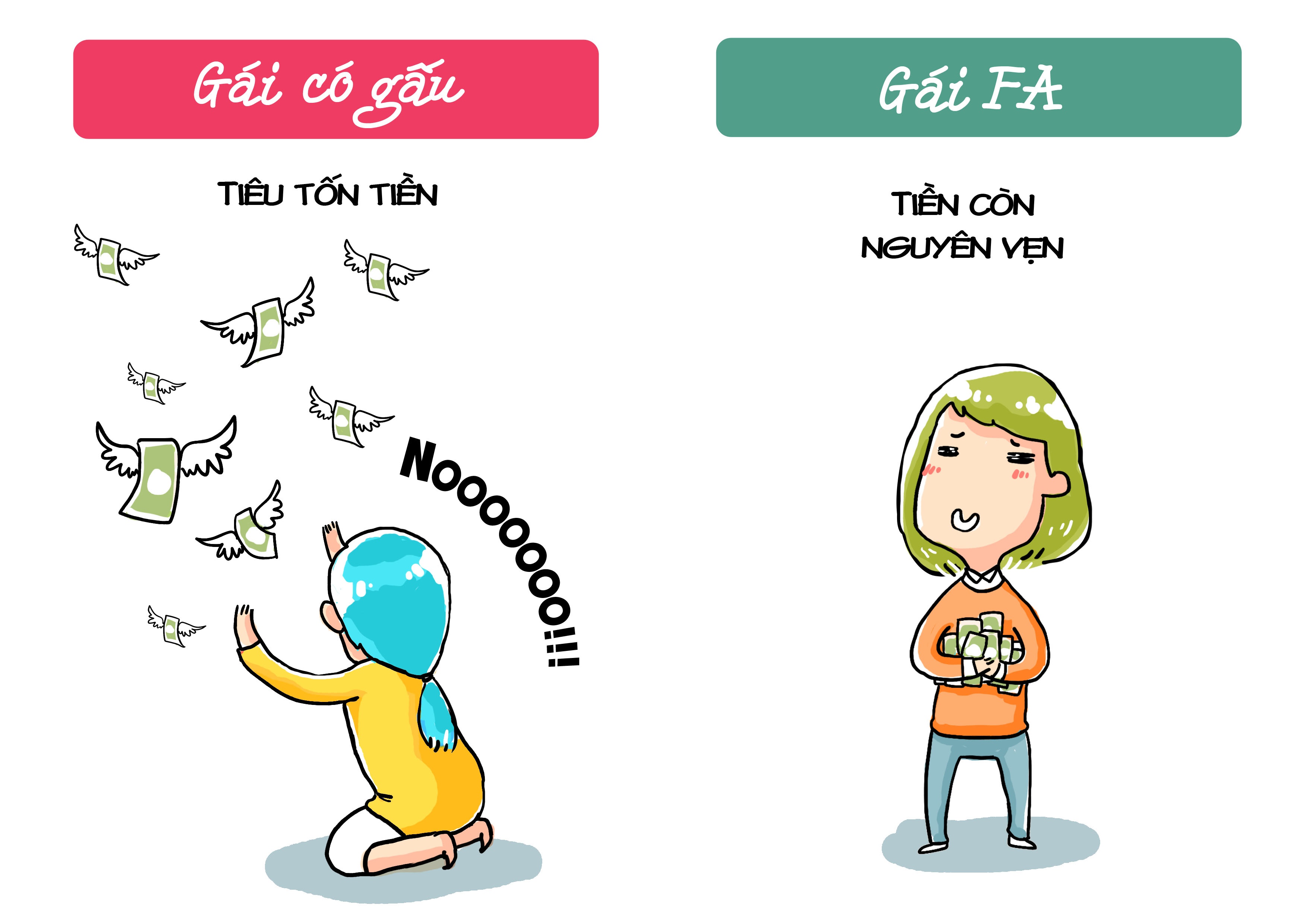 | Phái đẹp có bạn trai đương nhiên tốn tiền, còn F.A thì không. |