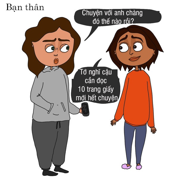 Theo BuzzFeed, cách chúng ta chia sẻ về mối tình vừa chớm nở với người bạn mới quen và "chiến hữu" lâu năm rất khác nhau.