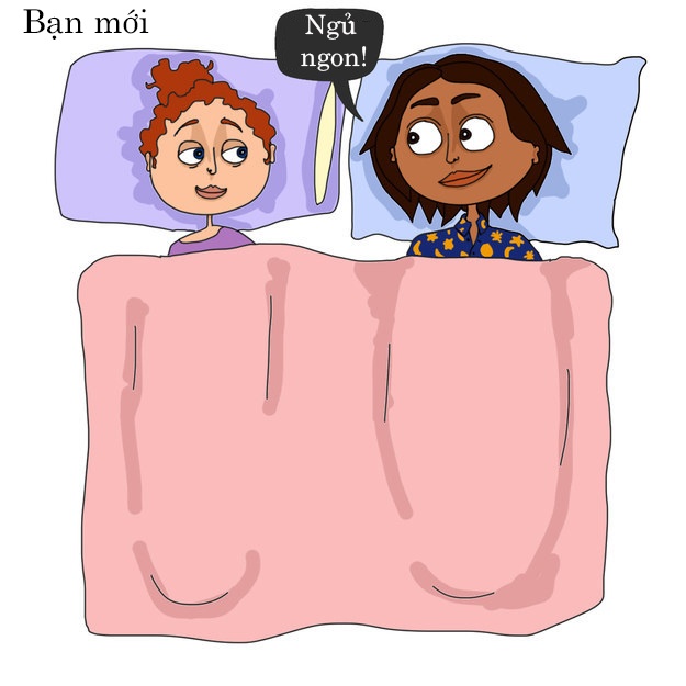 Nếu có dịp ngủ cùng nhau, bạn mới thường không quên thể hiện phép lịch sự. Trong khi đó, đám "chiến hữu" hoàn toàn ngược lại.