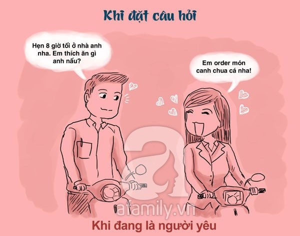 | Đơn giản như việc ăn uống. Khi yêu chồng luôn quan tâm hỏi vợ thích ăn gì. Nhưng khi là chồng rồi, chồng chẳng thèm quan tâm vợ thích ăn gì mà sẽ hỏi hôm nay có gì ăn. |