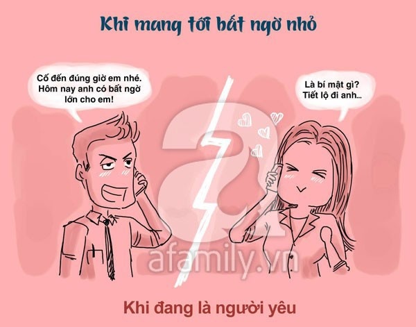 | Khi còn là bạn trai, chàng luôn mang tới sự bất ngờ cho vợ. Nhưng khi là vợ chồng rồi, chồng chẳng còn lãng mạn nữa. Ngược lại, chồng khô cứng và vô tình với vợ. |