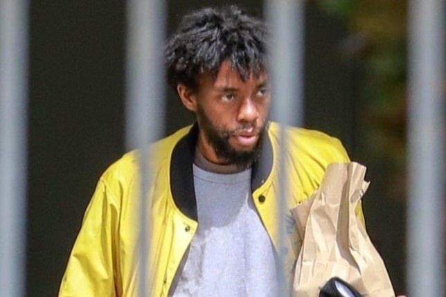 | Boseman phải sử dụng gậy chống để di chuyển khi bệnh tình ngày một xấu đi. Ảnh: Just Jared. |