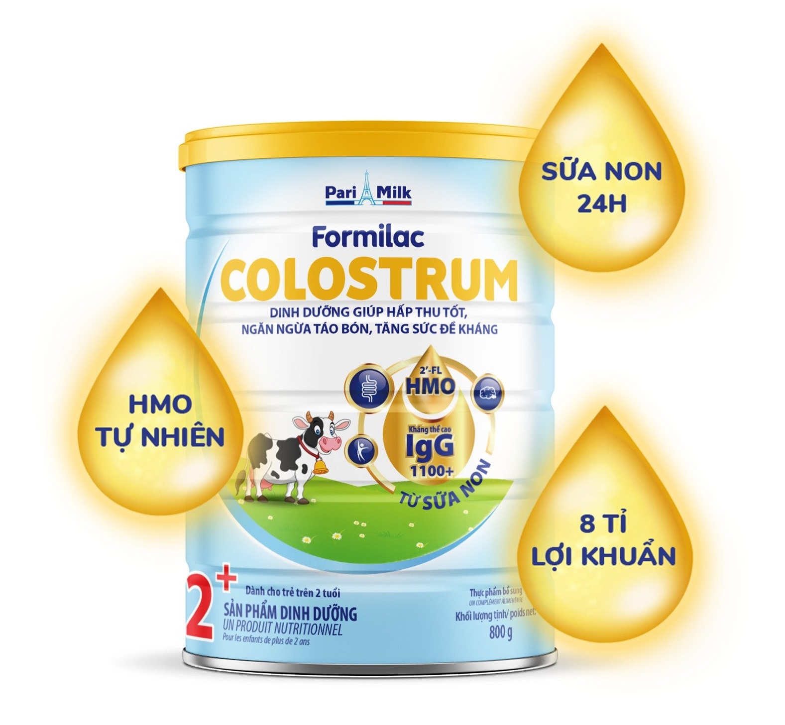 Với mong muốn giúp trẻ em Việt Nam xây dựng hệ tiêu hóa khoẻ mạnh, từ đó hấp thu tốt các dưỡng chất và phát triển tối ưu thể chất lẫn trí não, công ty PariMilk cho ra đời dòng sản phẩm sữa công thức thanh mát chuẩn Âu Formilac Colostrum. Sản phẩm kết hợp bộ ba dưỡng chất thanh mát gồm sữa non 24hnhập khẩu từ Mỹ, 2’-FL HMO và 8 tỷ lợi khuẩn hỗ trợ bé tiêu hoá tốt, đề kháng khoẻ hơn.