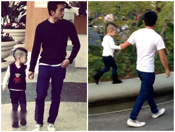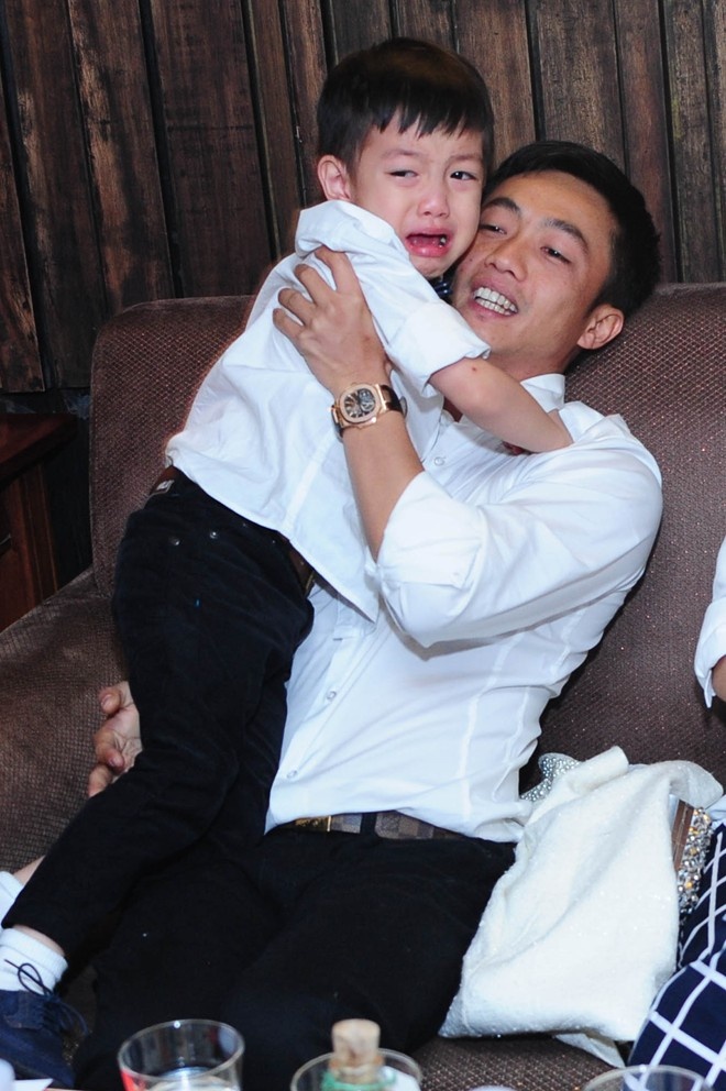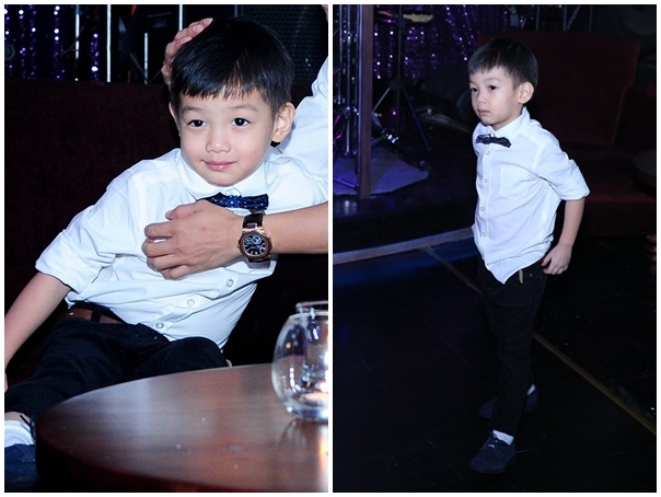 Cậu nhóc ăn vận dễ thương, đồng bộ với trang phục lịch sự của bố Cường.