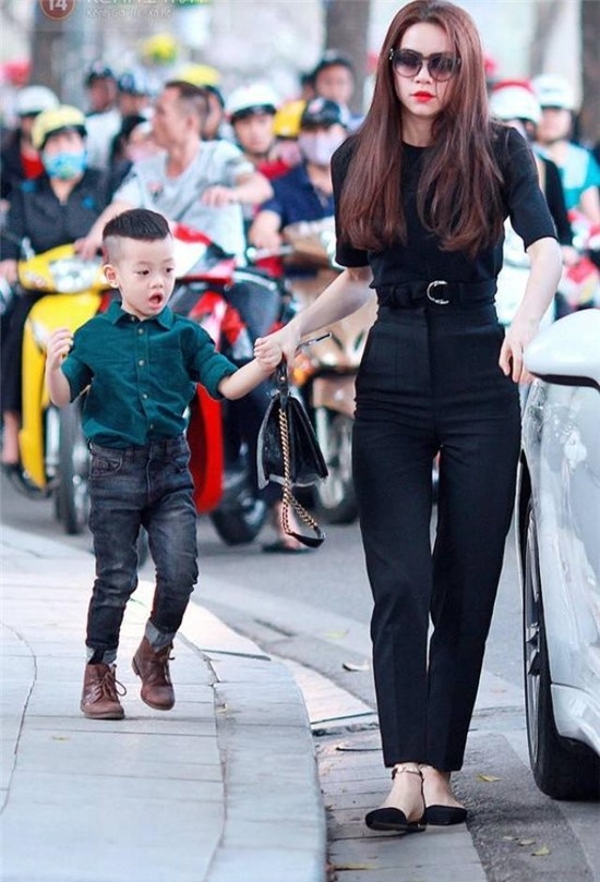 Không chỉ xuất hiện đồng bộ với mẹ, câu nhóc 4 tuổi còn diện trang phục ăn ý với bố. Hình ảnh hạnh phúc của Cường Đô la và con trai nhận được sự quan tâm từ công chúng.