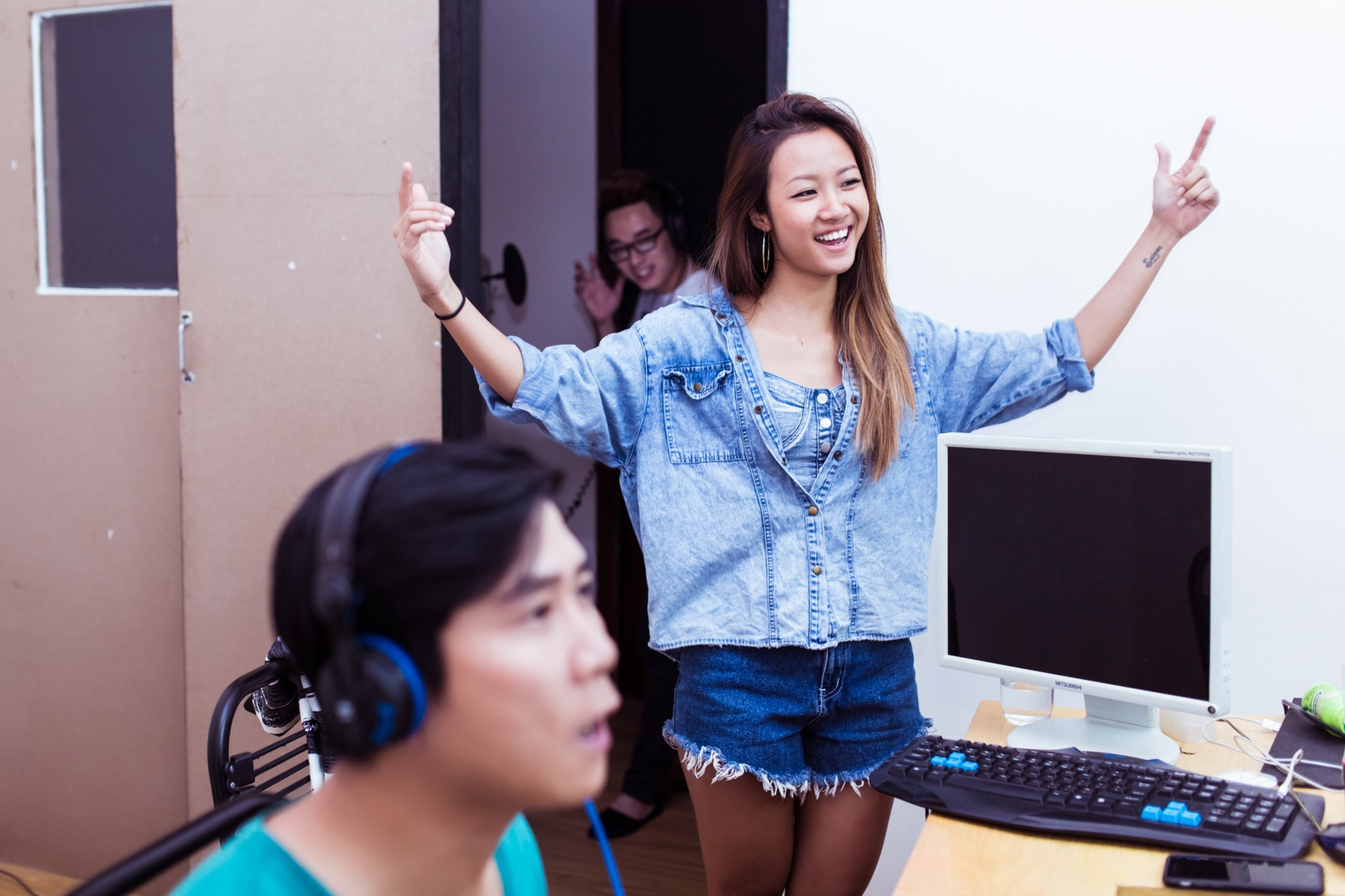 | Lần đầu làm việc chung, cả hai nhanh chóng hòa nhập với không khí công việc. Trúc Nhân đưa ra nhiều góp ý giúp nữ ca sĩ thể hiện bài hát mạnh dạn hơn, nhiều cảm xúc hơn. Suboi đáp lại với tinh thần học hỏi và vui vẻ, cô cũng khá hài hước khi pha trò trong suốt buổi thu âm. |
