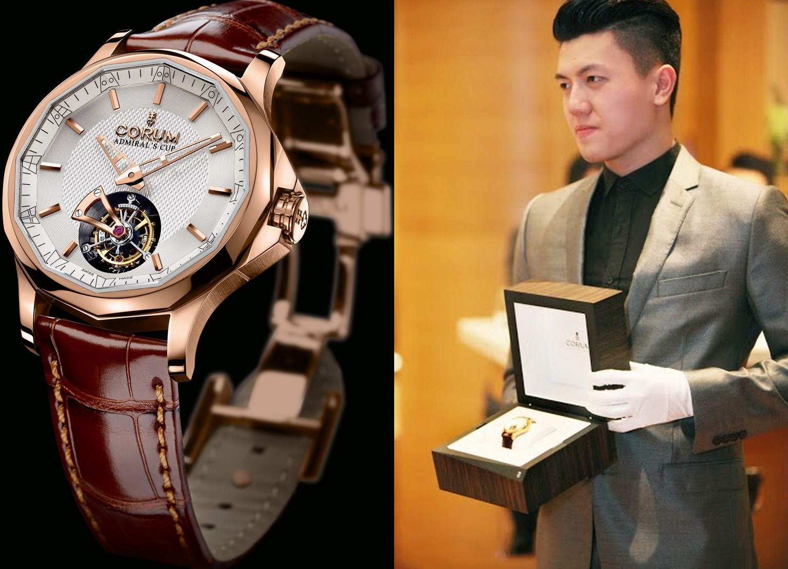 Bảo Anh giới thiệu chiếc Corum Tourbillon Micro-Rotor vàng khối phiên bản 55 chiếc trên toàn thế giới. Xem thêm hình ảnh các mẫu đã được trình diễn tại Frost of London hoặc Four Seasons Global.