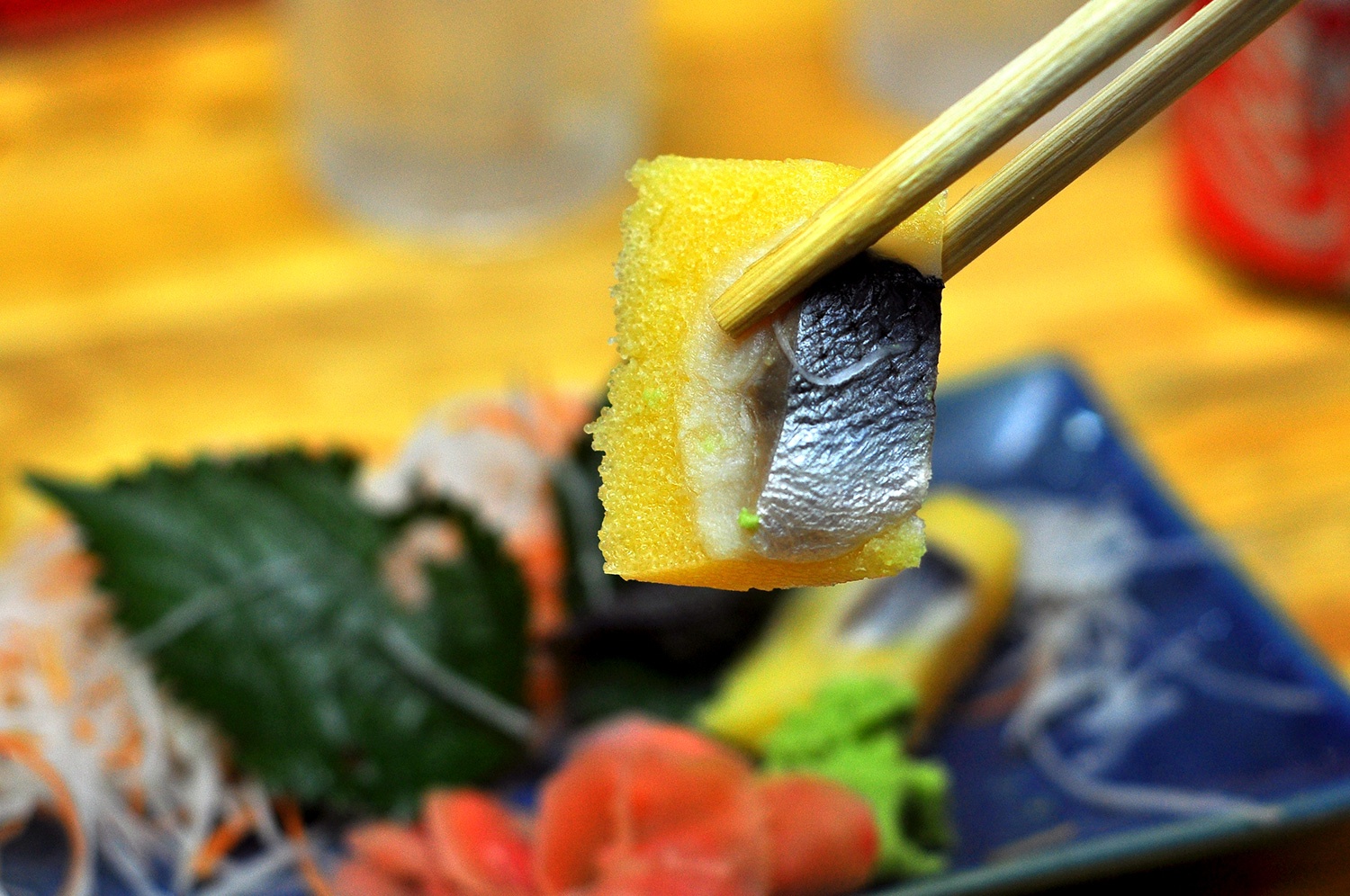 | Sashimi là món sang chảnh mà các quán bình dân thường ít bán. Sashimi cá trích giòn ngọt, 82.000 đồng/5 miếng nhưng rất "bõ tiền". |