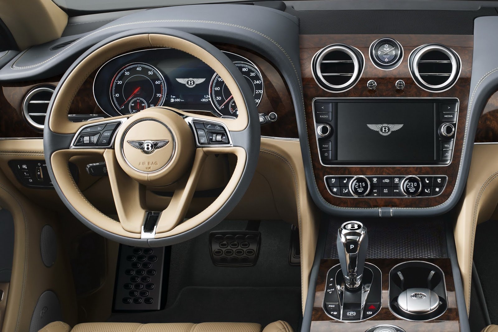 Nội thất của Bentayga được trang bị nhiều chi tiết sang trọng, không kém bất kỳ sản phẩm nào Bentley từng sản xuất. Mui xe thiết kế kiểu cửa sổ trời toàn cảnh. Bảng điều khiển trung tâm nổi bật với màn hình cảm ứng 8 inch. Hệ thống thông tin-giải trí của xe đi kèm ổ cứng dung lượng 60 GB. Ngoài ra, xe còn được trang bị một máy tính bảng kích thước 10,2 inch có kết nối 4G và Wifi cho hàng ghế phía sau. Hệ thống âm thanh gồm 18 loa với tổng công suất 1950 W.