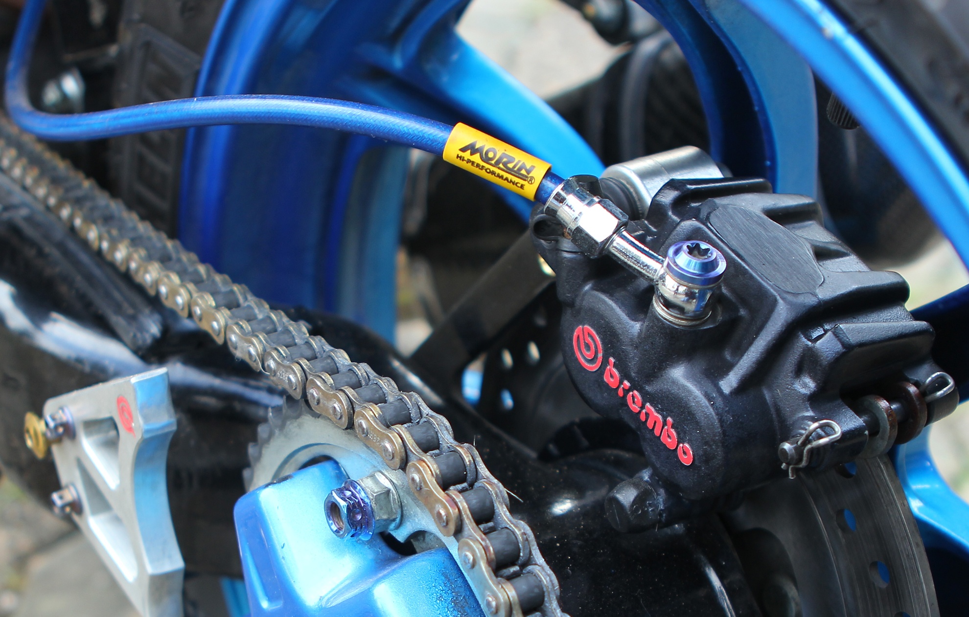 | Ngàm phanh sau Brembo 2 piston với dây dầu Morin. Hệ thống truyền động với dây xích DID. |