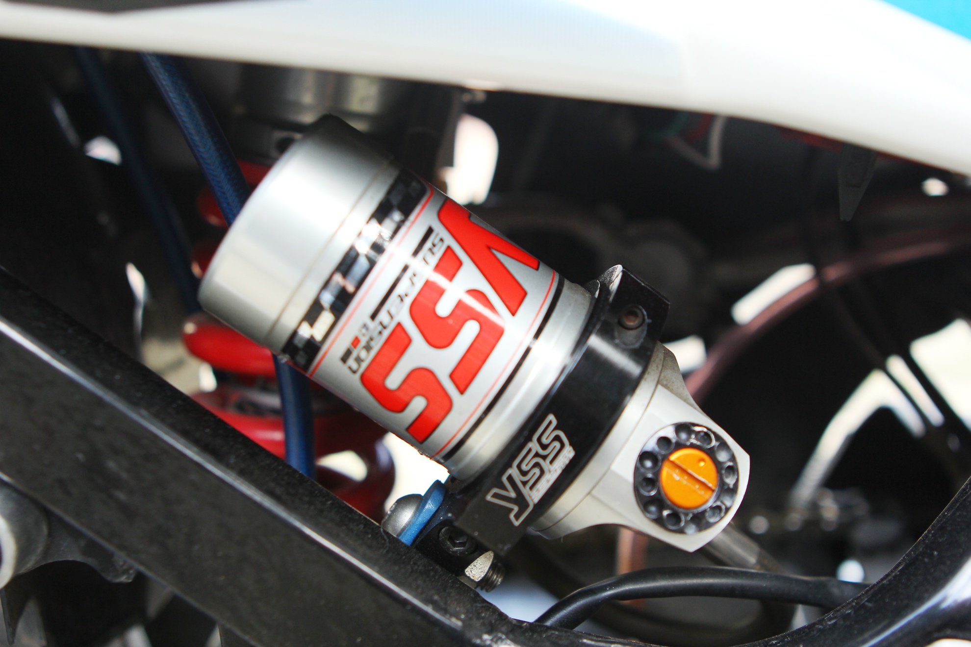 | Giảm xóc sau YSS X-Series phiên bản xuất châu Âu với bình dầu rời. |