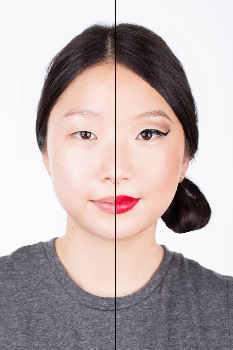 Bình thường tôi vẫn nghĩ trang điểm hay không cũng không có nhiều khác biệt. Việc trang điểm trên nửa khuôn mặt khiến tôi nghĩ lại, bởi tôi như là 2 con người hoàn toàn khác. Một chính là tôi và một táo bạo, mạnh mẽ hơn.