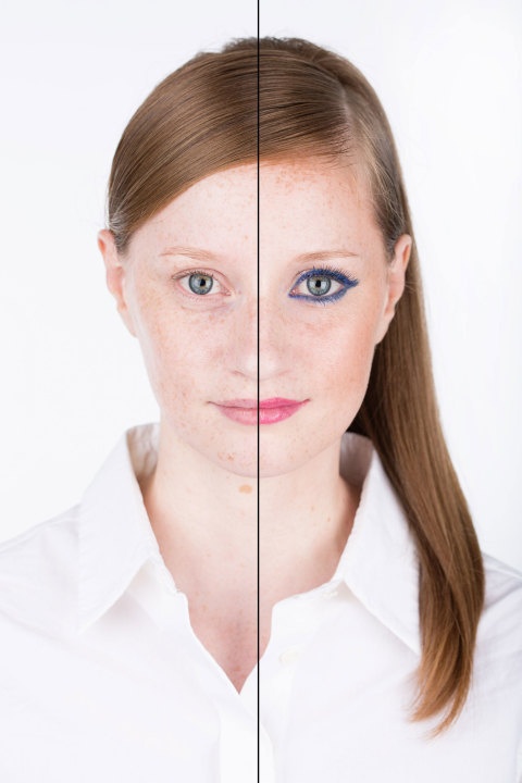 Trang điểm nhiều khiến tôi có cảm giác nặng nề. Vì thế tôi thường sử dụng mascara và kem che khuyết điểm. Khi trang điểm kỹ hơn trên nửa khuôn mặt, tôi thấy mình thật hấp dẫn. Và tôi còn ngạc nhiên hơn nữa khi thiếu phần trang điểm mắt, tôi thấy nó không hề bé tí, kỳ dị như tôi vẫn tưởng tượng.