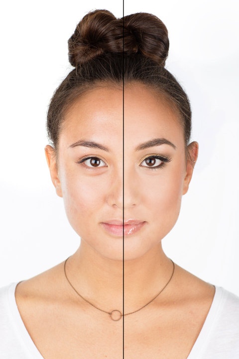 | Chuyên gia trang điểm sự dụng phong cách trang điểm ngày thường với nửa khuôn mặt của Jaclynn |