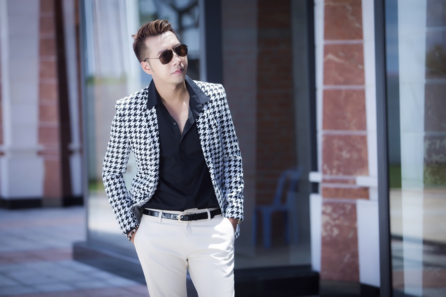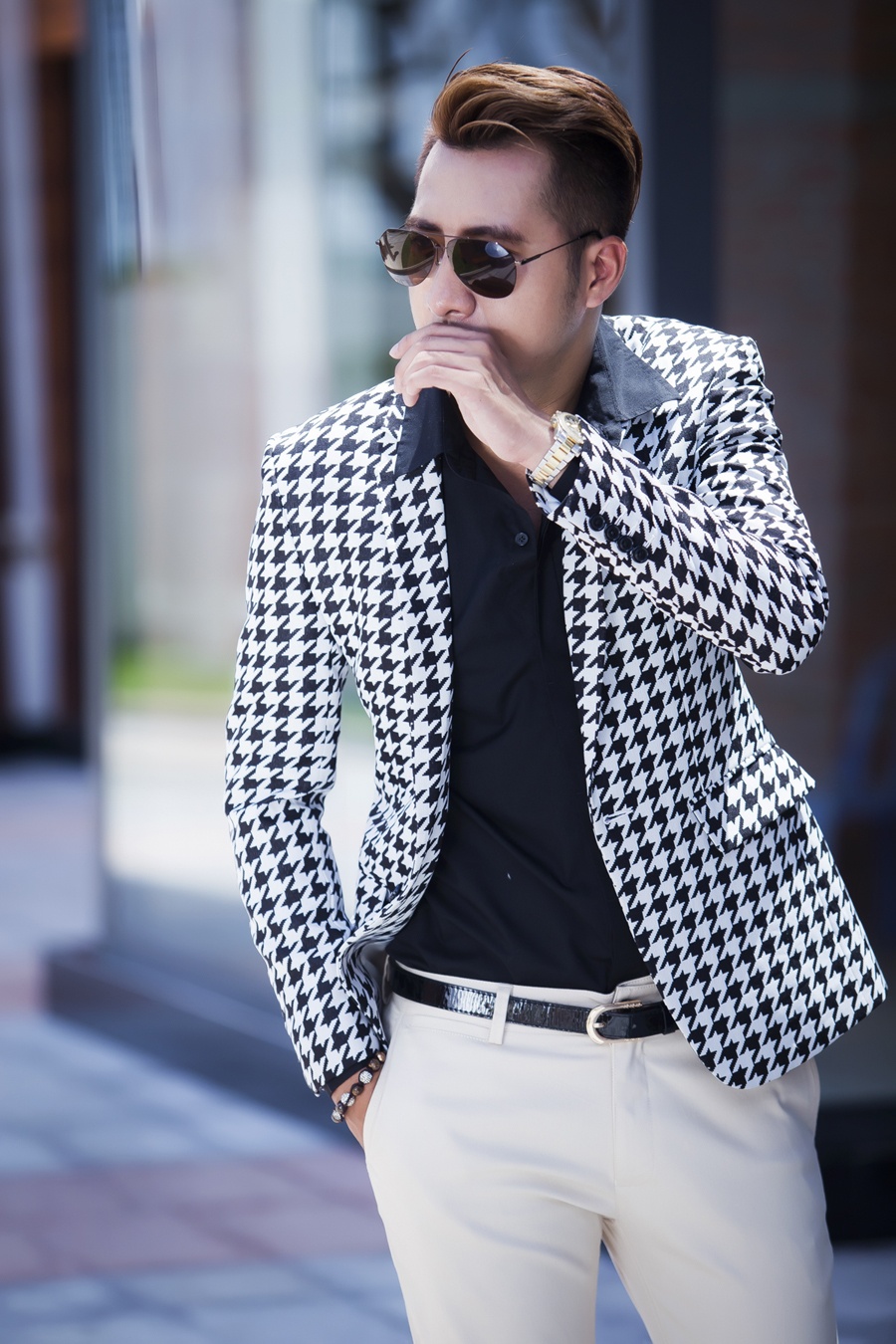 | Anh diện vest ca-rô cá tính mix cùng áo sơ-mi trắng, quần tối màu hài hòa. |
