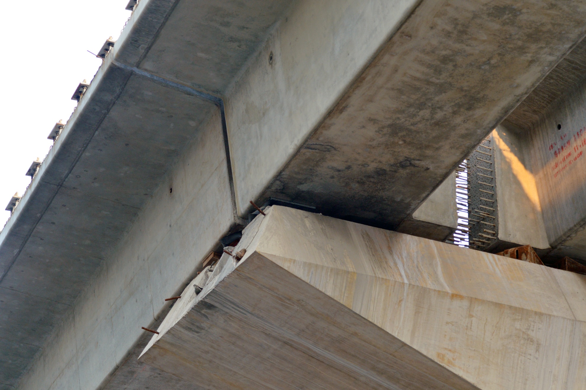 Nhìn bằng mắt thường, ngay cả các phiến bê tông chênh vênh như thế này cũng rất không yên tâm. Tháng 4/2010, công trình cầu cạn Pháp Vân (thuộc dự án xây dựng cầu Thanh Trì và đường trên cao vành đai 3) nối từ nút cầu Đại Từ qua khu đô thị Linh Đàm cũng từng bị sập nhịp dẫn. "Điều đó cho thấy ngay cả các trụ cầu dẫn như thế này chưa chắc đã an toàn", anh Hưng chia sẻ thêm.