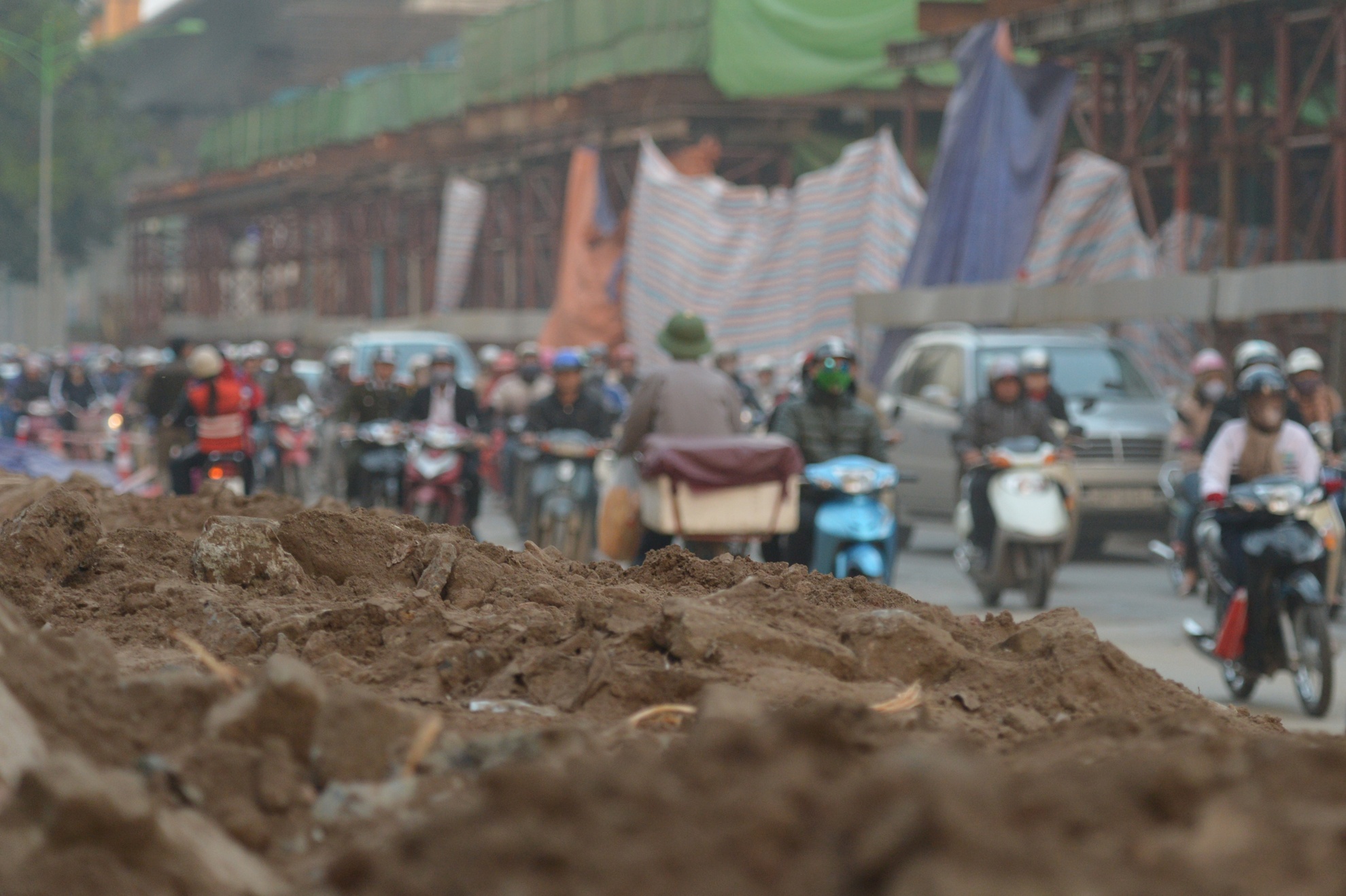 | Nguyên nhân là do những đống đất cao chồng chất bên đường... |