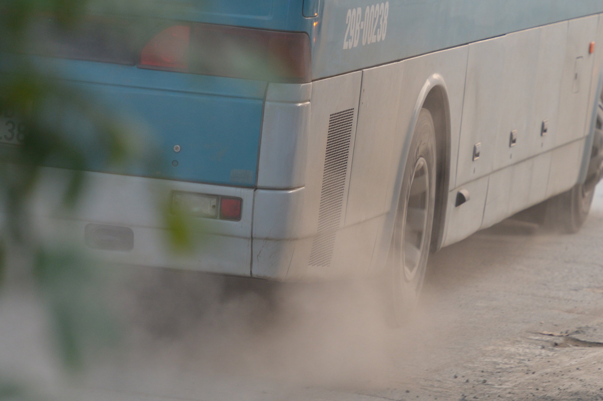 | Và từng chiếc xe khách, xe tải đi qua cuốn bụi tung lên mù mịt. |
