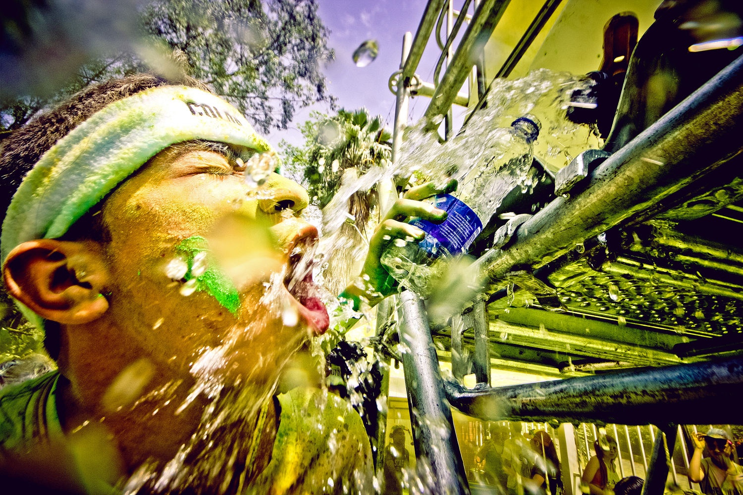 | Vận động viên uống nước trong cuộc thi chạy Colour Run ở Colombia. Ảnh: Jonathan Carvajalr |