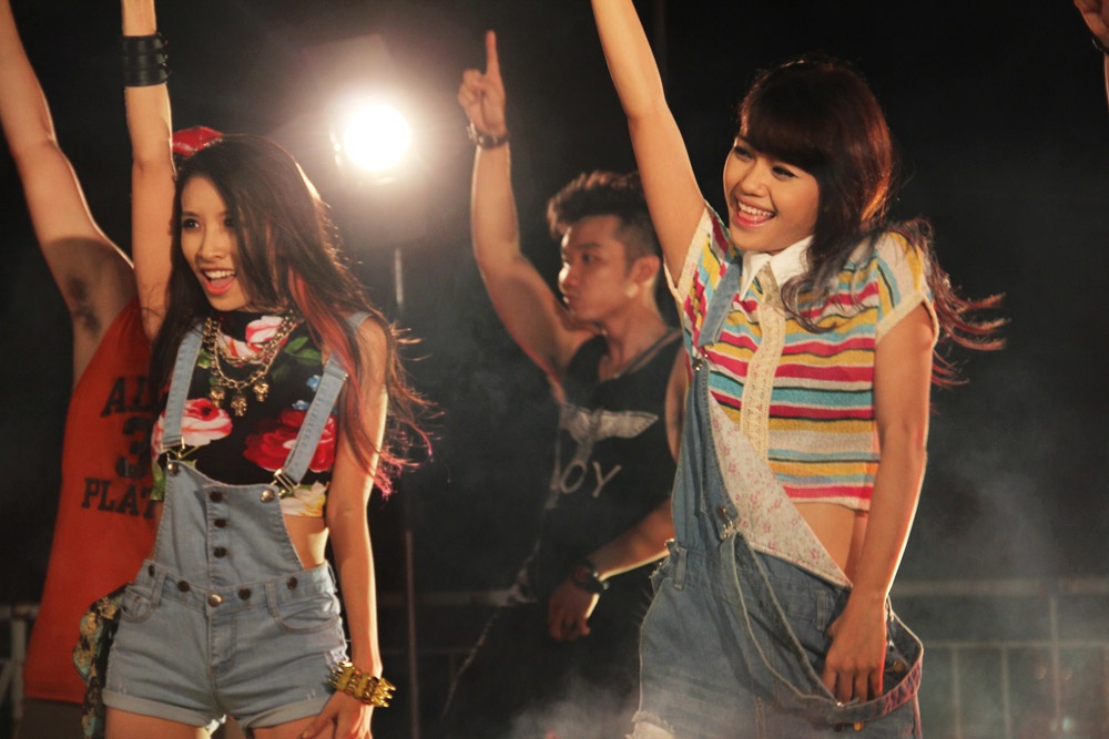 Hai cô gái Panda (Hải Lê) và Jenny (Hồng Nhung) không ngại chi 4.000 USD để thực hiện một MV với nhiều cảnh quay nguy hiểm trên không.
