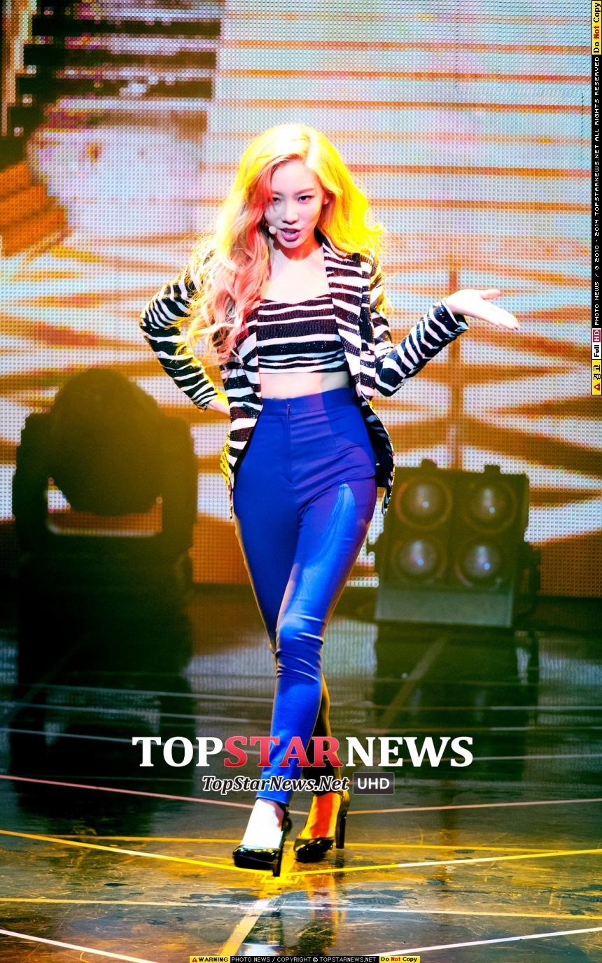 | Trưởng nhóm SNSD xoạc chân đầy khiêu khích. |