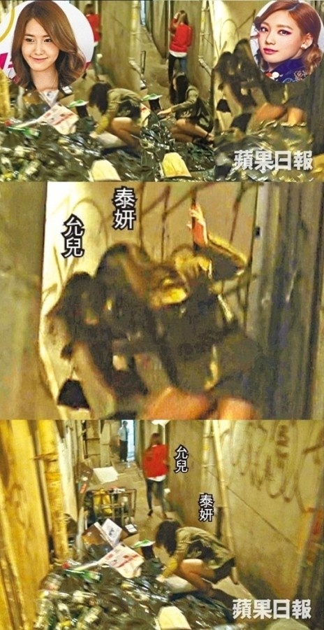 Trang này cho biết, Taeyeon say xỉn tới mức không thể đứng vững. Cô phải bám vào người Yoona, và sau đó ngã nhào vào đống rác bên ngoài câu lạc bộ. Khi phát hiện đang có camera hướng về phía mình, Yoona đã ngay lập tức quay đi và chạy trốn.