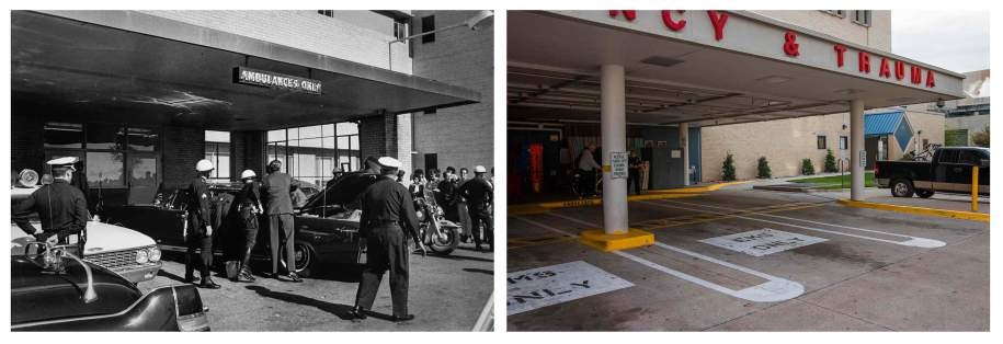 | Đây là nơi chiếc Limousine của Tổng thống đã đỗ khi đưa ông tới Bệnh viện Parkland Memorial để cấp cứu. Ảnh: Reuters |