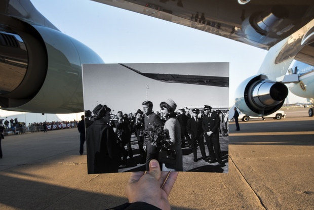 | Tổng thống John F. Kennedy và phu nhân đặt chân xuống sân bay Love Field tại thành phố Dallas, bang Texas vào ngày 22/11/1963. Đây là ngày thứ hai cũng là ngày cuối cùng trong lịch trình tới bang Texas của vị tổng thống trẻ. Ảnh: Getty Images |