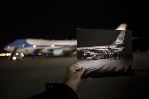 | Phi cơ Không lực 1 đưa linh cữu Kennedy về căn cứ không quân Andrews tại bang Maryland. Ảnh: Getty Images |