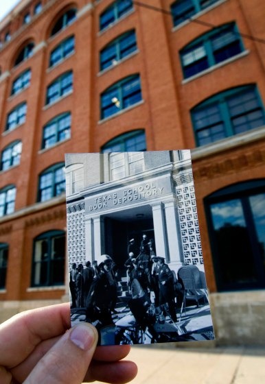 | Cảnh sát và các thám tử lục soát Kho sách giáo khoa Texas sau khi Tổng thống Kennedy bị ám sát. Ảnh: Houston Chronicle |