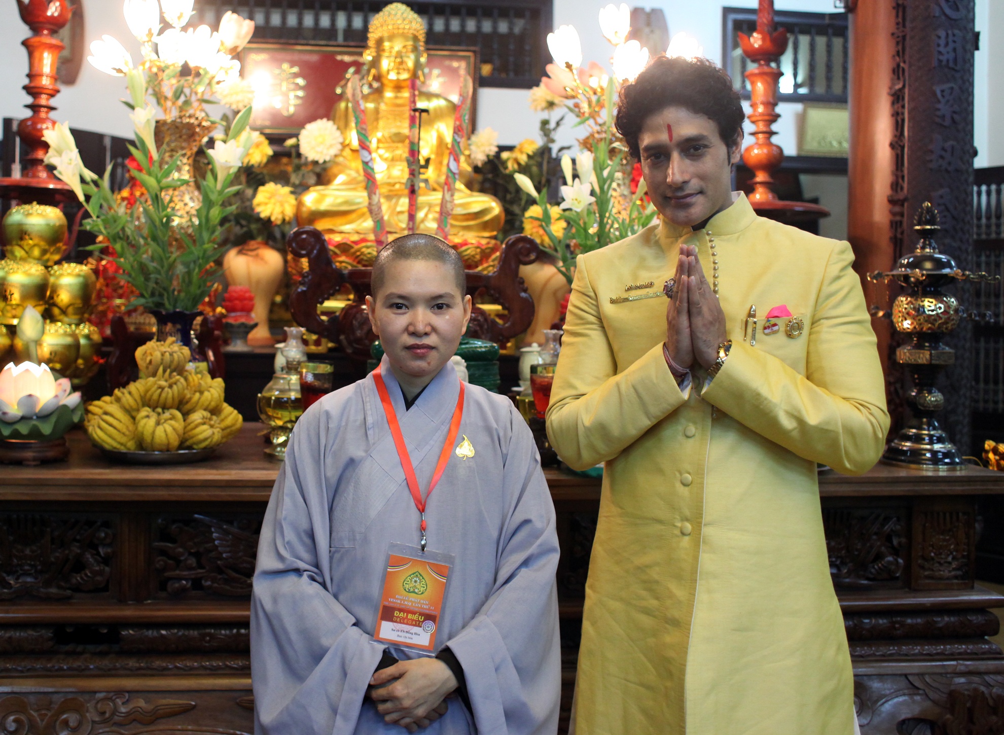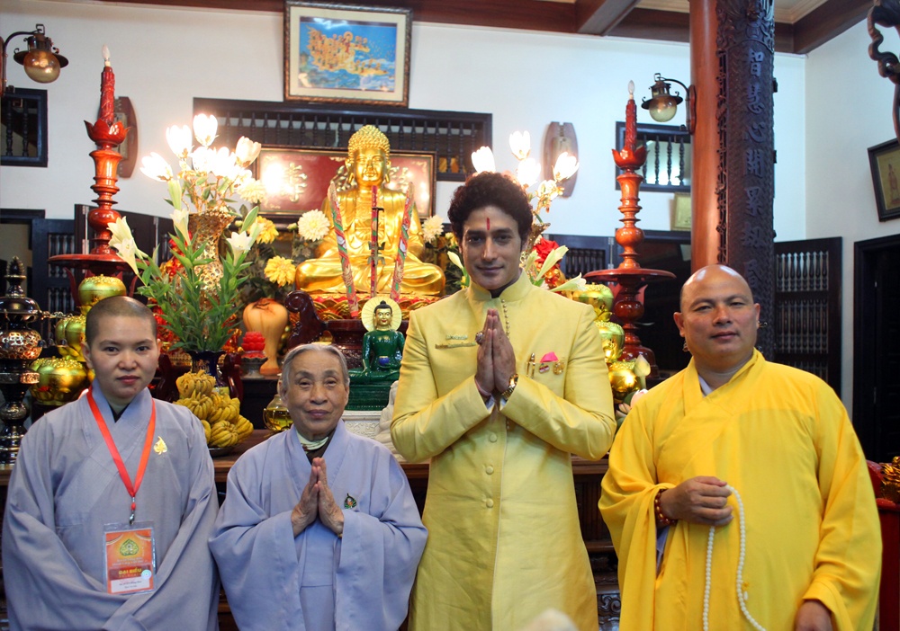 Gagan Malik - nam diễn viên chính trong bộ phim 'Cuộc đời Đức Phật' - đã có buổi giao lưu với các tăng ni, Phật tử tại chùa Tăng Phúc, Hà Nội vào tối 7/5.