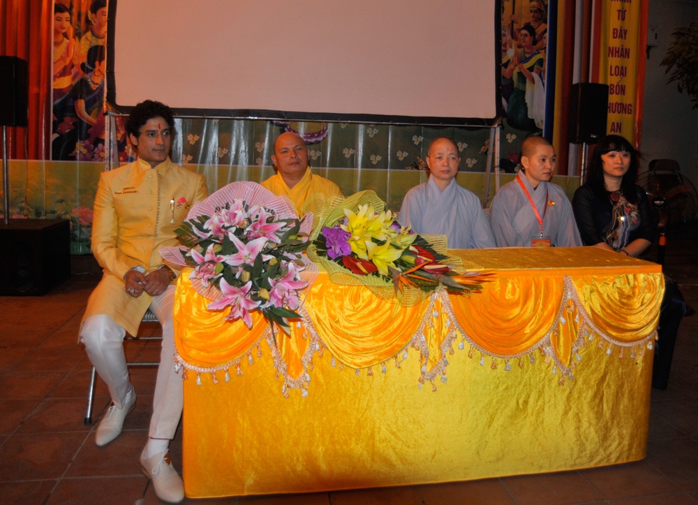 | Do đạo diễn đang tham dự buổi chiêu đãi của chính phủ Việt Nam tại Ninh Bình, nên nam diễn viên chính thay mặt đoàn làm phim giao lưu vơi tăng ni, Phật tử và khán giả Việt Nam. |