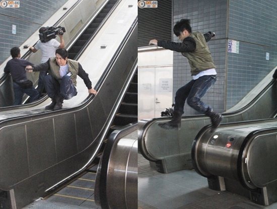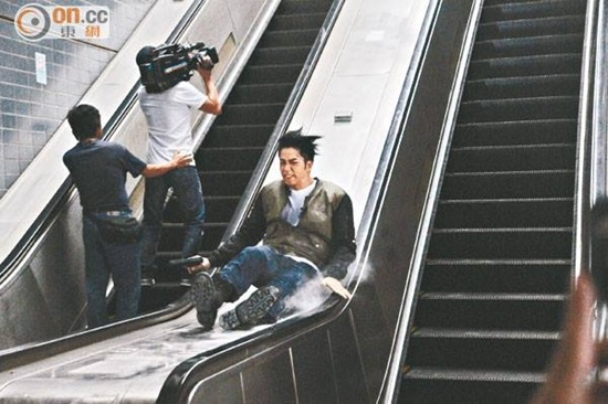 Mỹ nam TVB phải rất vất vả mới hoàn thành xong cảnh phim "khó nhằn". Vì trượt quá hăng, anh gặp tai nạn rách quần ngay giữa phim trường. Các trợ lý phục trang đã ngay lập tức đến "chữa cháy" bằng cách khâu tạm phần rách để buổi quay được tiếp tục.