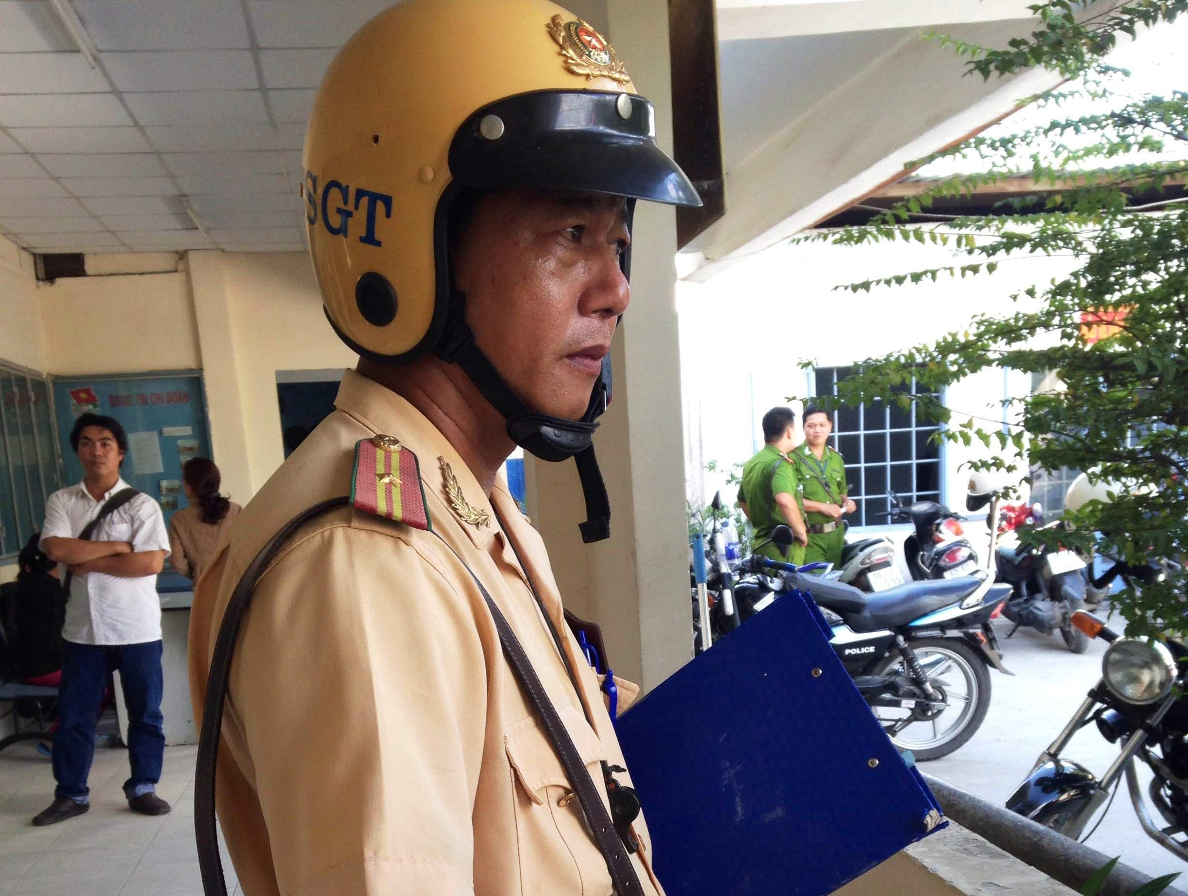 Chiều 28/8, 2 cán bộ của đội cảnh sát giao thông Hàng Xanh (PC67, Công an TP HCM) làm nhiệm vụ tại giao lộ Kha Vạn Cân - quốc lộ 13, phường Hiệp Bình Chánh, quận Thủ Đức phát hiện ôtô 4 chỗ hết hạn đăng kiểm. Lực lượng chức năng đã ra hiệu dừng xe để kiểm tra.