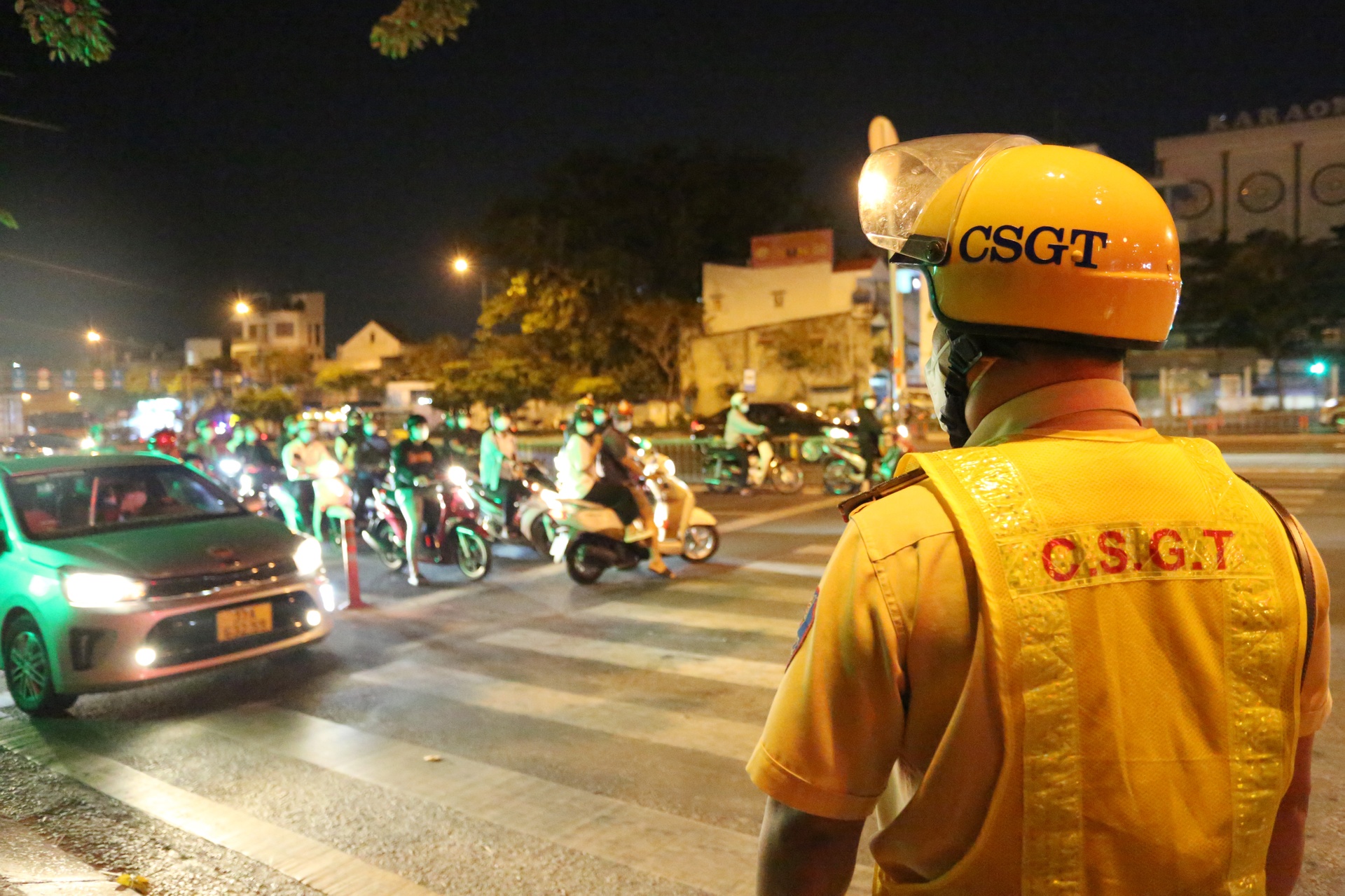 | Tối 11/12, Đội Tuần tra dẫn đoàn thuộc Phòng CSGT đường bộ - đường sắt Công an TP.HCM kiểm tra nồng độ cồn người điều khiển phương tiện qua giao lộ Phạm Văn Đồng - Phan Văn Trị, quận Bình Thạnh. |
