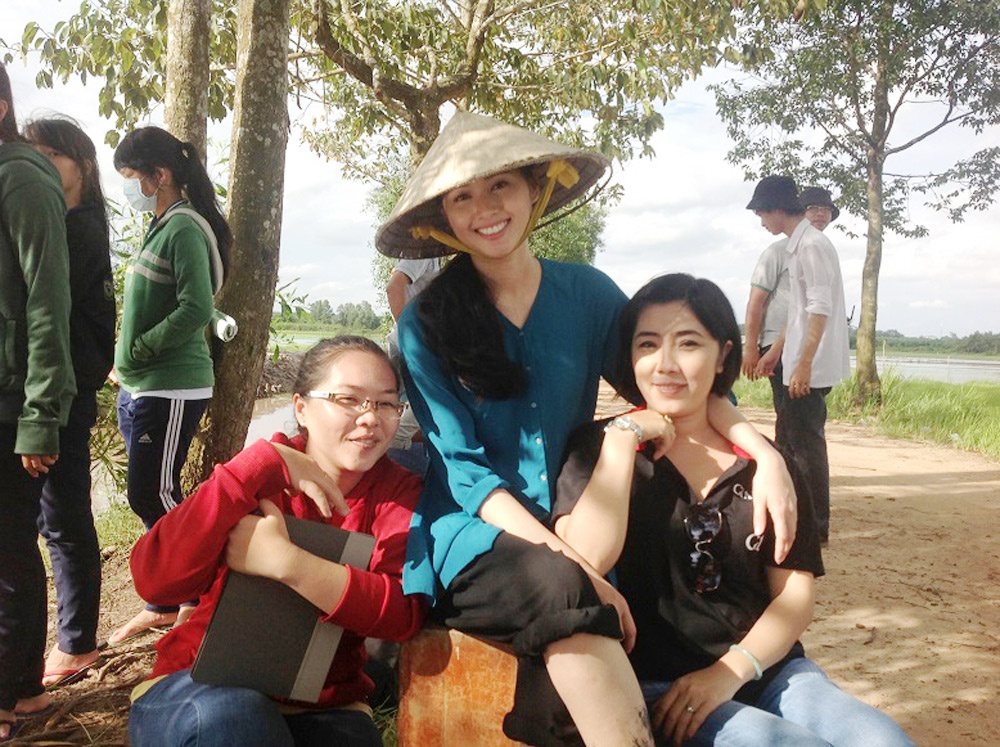 | Xuất hiện với hình ảnh gái quê mặc áo bà ba, chân đi dép lê và phải chăn vịt để kiếm sống nhưng hot girl sinh năm 1989 vẫn rất xinh đẹp và nổi bật trên phim trường. Để hóa thân vào nhân vật Út Hương trong bộ phim điện ảnh Tỷ phú chăn vịt, con gái của hai vợ chồng Tư Ếch sống bằng nghề chăn vịt 13 năm nay, Tâm Tít đã chấp nhận thay đổi hình ảnh của mình. Cô không mặc hàng hiệu, không giày cao gót, không phấn son lấp lánh ánh nhũ và phải diễn dưới cái nắng nóng suốt thời gian dài. |
