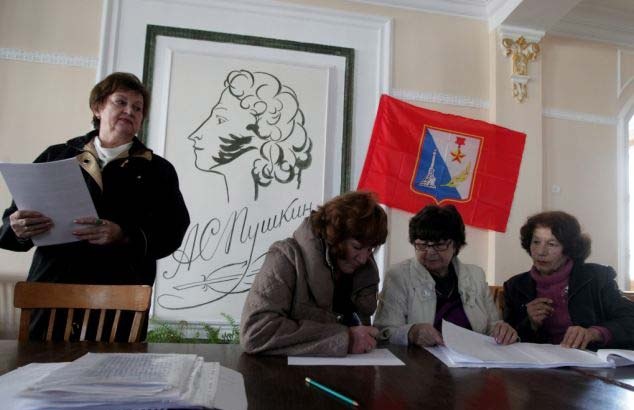 Svetlana Kalisetskaya, trưởng ban tổ chức tại điểm bỏ phiếu tại làng Perevalnoye, nói với CNN: “Tôi muốn nói rằng, so với các cuộc bỏ phiếu khác, lần trưng cầu dân ý này rất thân thiện”. Ảnh: Reuters.