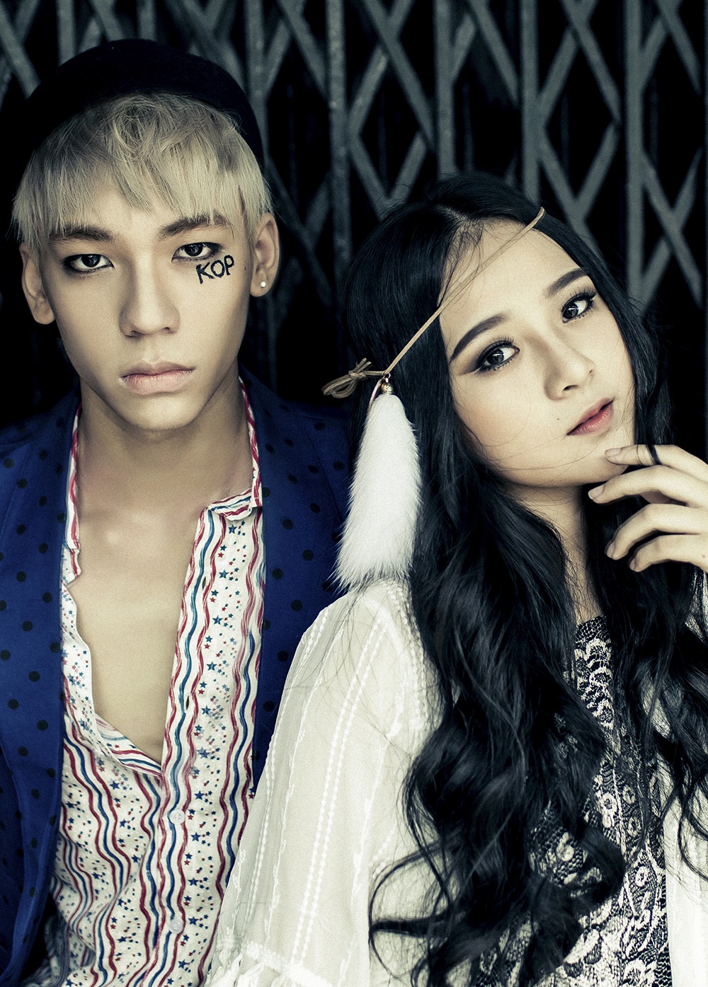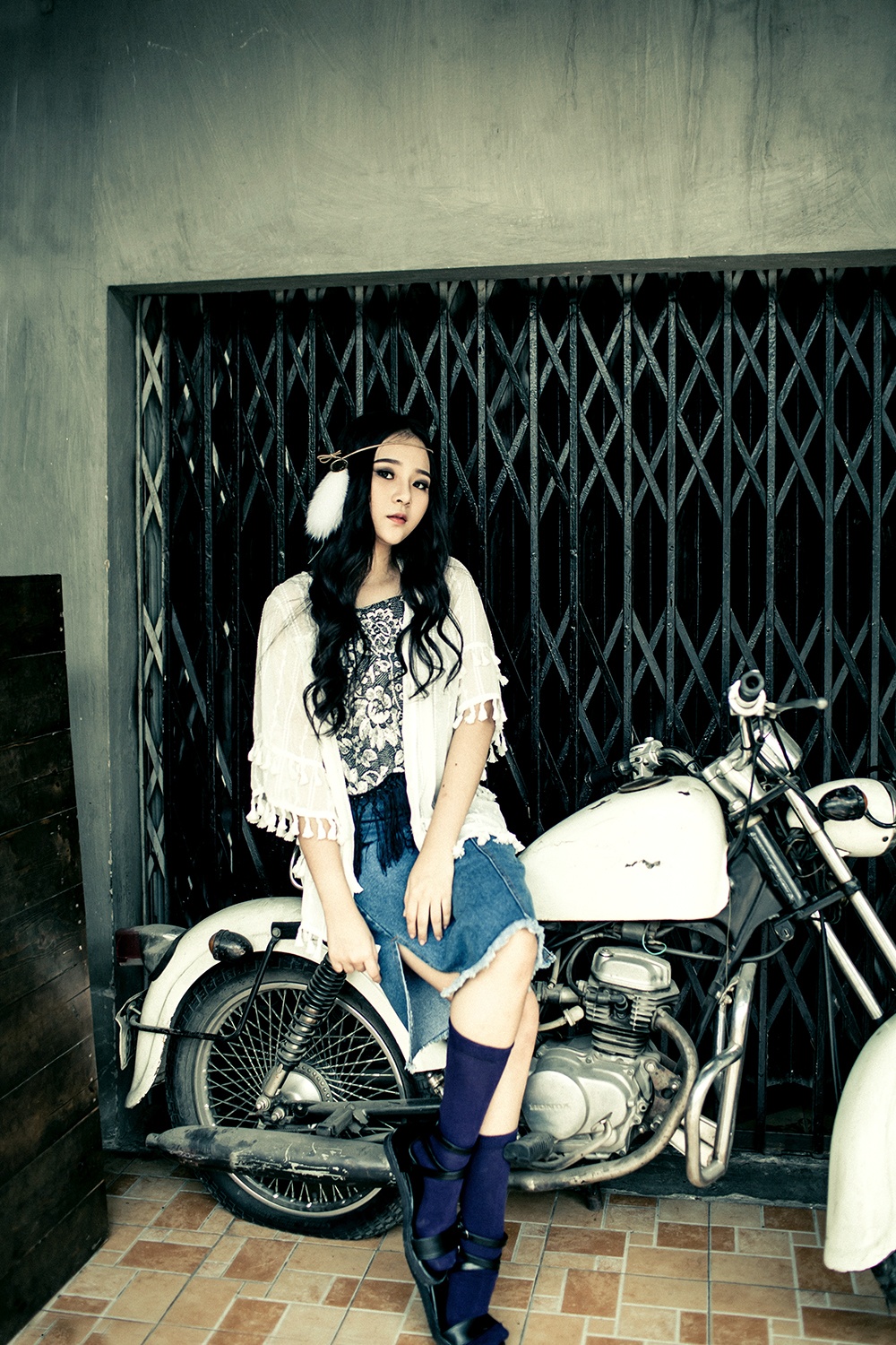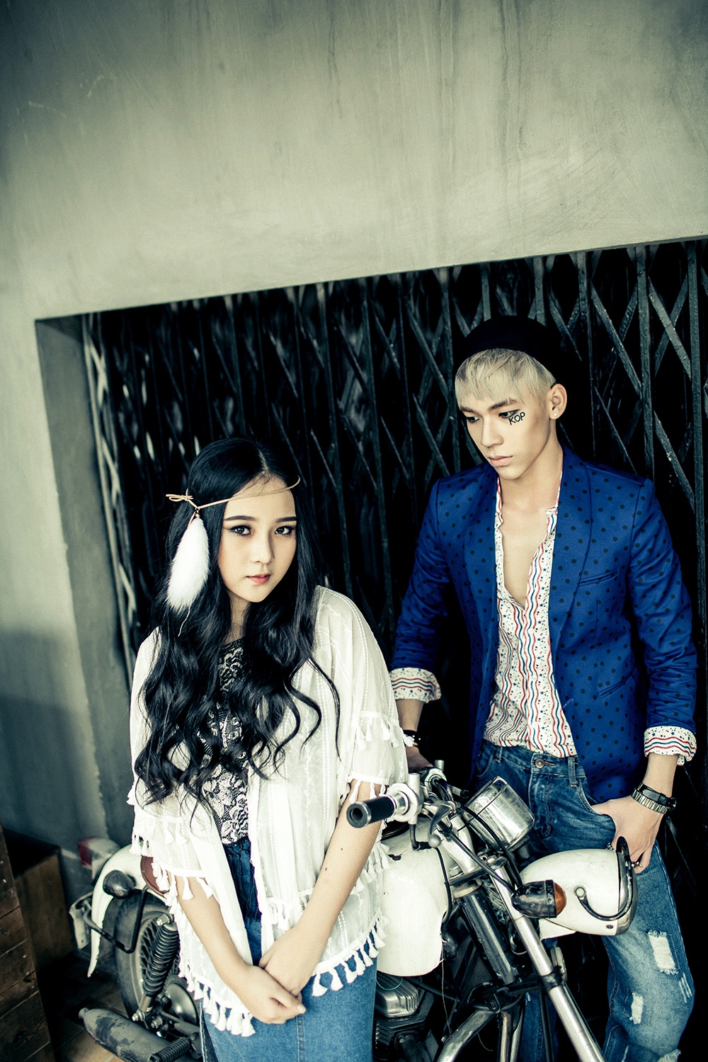 | Trong ảnh, nữ diễn viên diện trang phục đậm phong cách bohemien, kết hợp phụ kiện dây cột tóc hợp mốt. Nam người mẫu nổi bật không kém với quần jeans cá tính và diễn xuất lạnh lùng. |