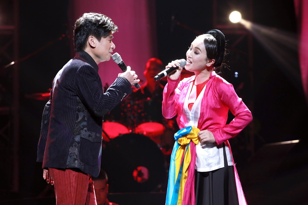 | Hai vợ chồng tình tứ thể hiện ca khúc mang âm hưởng chèo Đào liễu. Theo tiết lộ của Thu Huyền, ban đầu, cô rất ngại vì không biết hát gì, làm gì trên sân khấu hiện đại mà cô lại là nghệ sĩ chèo. Nhưng nhờ Tấn Minh động viên rằng anh sẽ hát chèo cùng nên cô đã nhận lời. Là một hậu phương vững chắc luôn kề cận bên chồng suốt nhiều năm nay, Thu Huyền không khỏi xúc động khi Tấn Minh đã cố gắng học cách hát chèo. Đó là điều không đơn giản với một ca sĩ nhạc nhẹ. |
