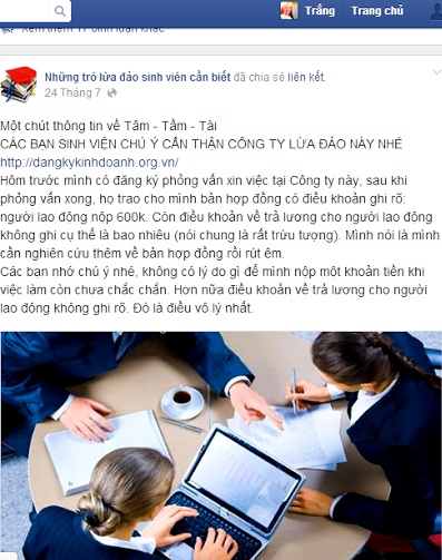 | Trang mạng xã hội cảnh báo chiêu lừa đảo mà sinh viên cần biết. |