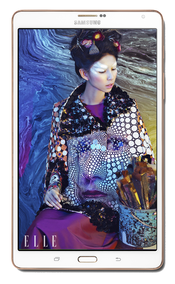 | Người mẫu trong bộ ảnh The Artist hiển thị trên máy tính bảng Galaxy Tab S sống động như đang bước từ khung hình này qua khung hình khác |