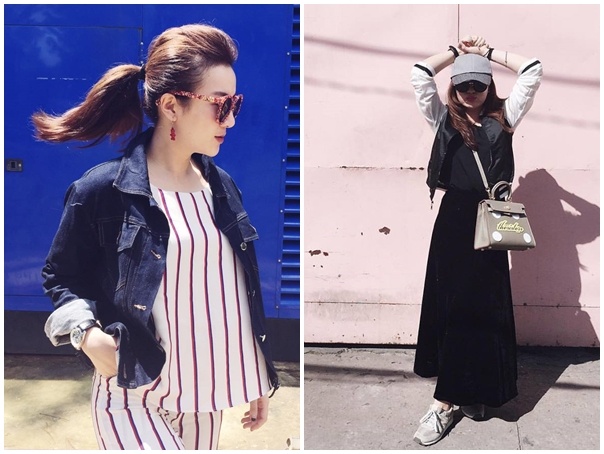 | Trên đường phố Sài thành, bà mẹ một con nổi bật với phong cách tối giản, thanh lịch. "Ngọc nữ" điện ảnh Việt duyên dáng với bộ cánh ôm sát, tông màu hồng và xám nhạt hài hòa, mang đến nét tươi trẻ cho ngươi mặc. |