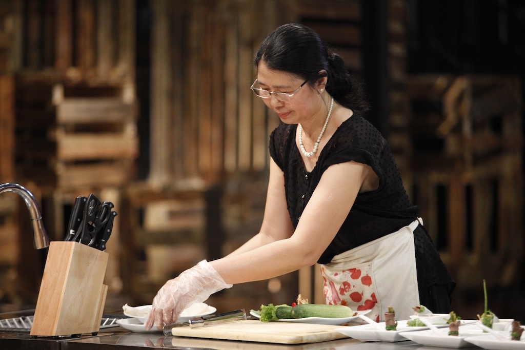 | Thanh Ngân - thí sinh lớn tuổi nhất Vua đầu bếp năm nay nhận được khá nhiều lời khen, sự yêu mến của ban giám khảo khi mang đến món Cuốn mùa hè đầy sáng tạo và tinh tế đến căn bếp của MasterChef Vietnam. Đến chương trình từ một cơ duyên, người phụ nữ 54 tuổi với hơn 30 năm kinh nghiệm đứng bếp đã không làm ban giám khảo thất vọng. |
