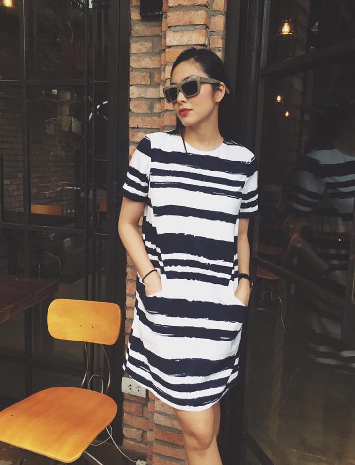 | Dáng áo suông, họa tiết sọc ngang phù hợp xuống phố ngày hè. Thiết kế đơn giản, dễ ứng dụng này được người đẹp nhiệt tình lăng xê vào tuần trước. |