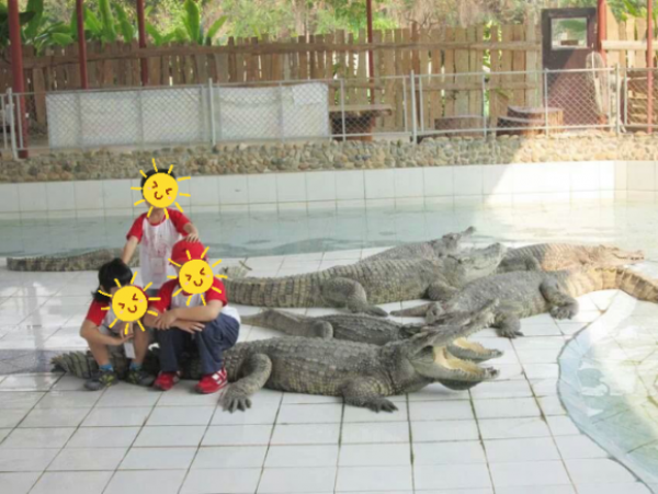 Xếp thứ 6 trong top 10 câu chuyện chấn động nhất Thái Lan năm 2014 là màn động chạm, chụp ảnh bên cá sấu của một số em bé mới chỉ học mẫu giáo. Những tấm ảnh chụp hoạt động độc đáo này được chia sẻ lần đầu tiên trên Drama-Addict (fanpage Facebook chuyên cung cấp thông tin hot tại Thái, hút hơn 500.000 like) vào tháng 3 vừa qua đã ngay lập tức gây bão cộng đồng mạng.