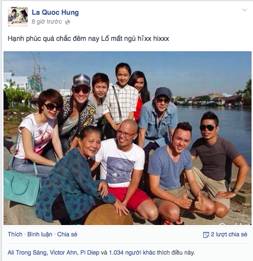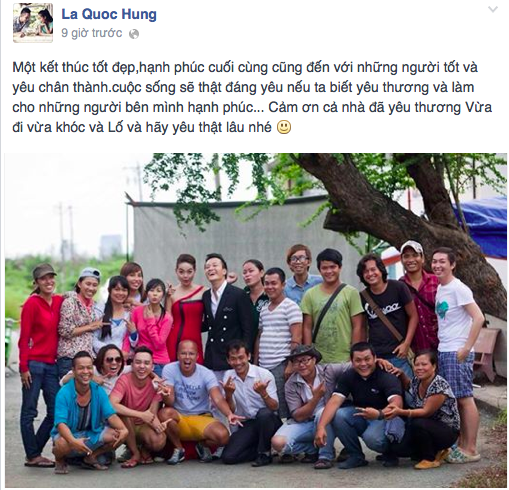 | Chia sẻ của La Quốc Hùng trên trang cá nhân kèm theo hình ê-kíp đoàn phim. |