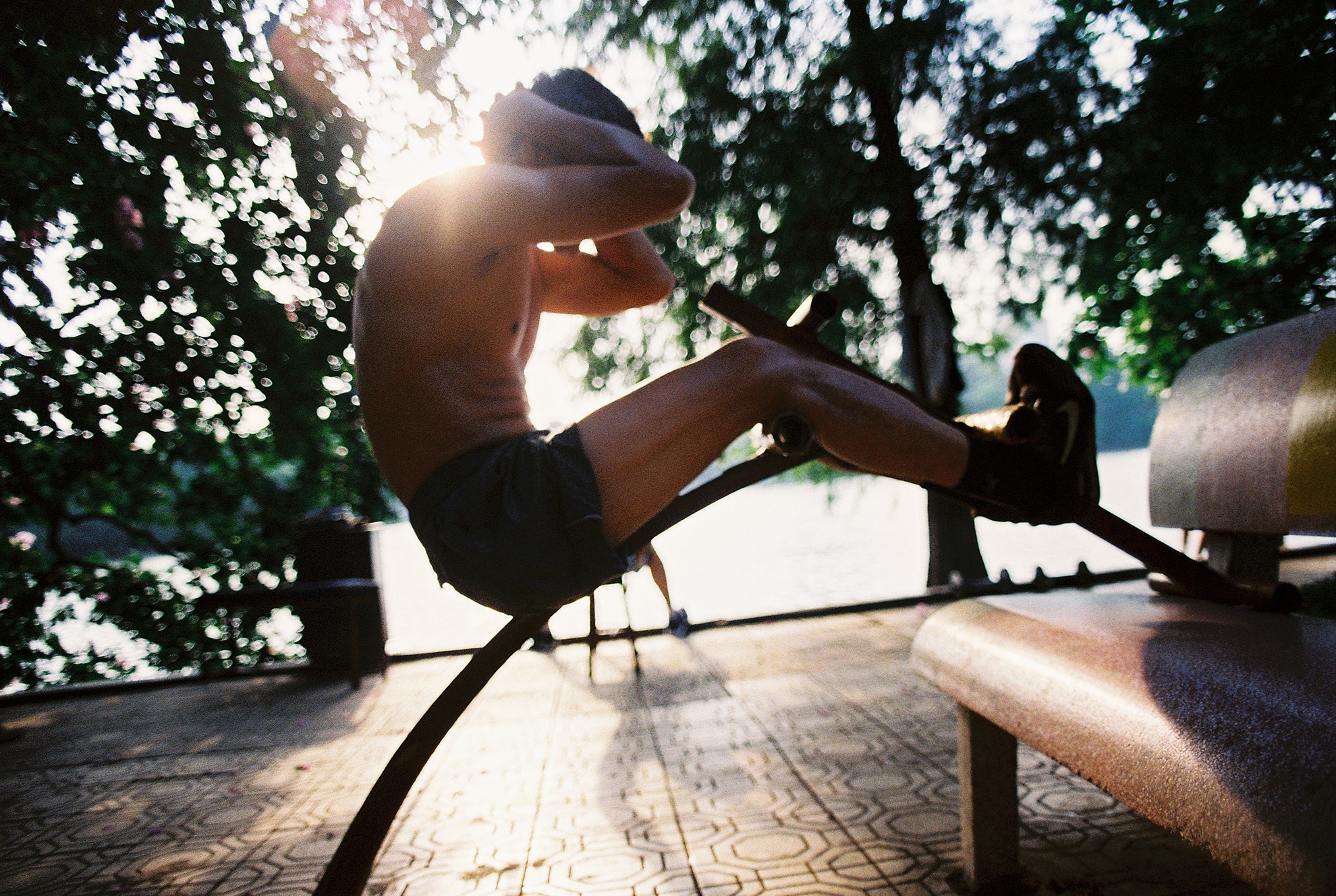 Tập thể hình bằng đồ tự chế bên hồ Gươm