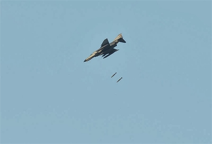 | Chiến cơ F-4 Phantom II của Thổ Nhĩ Kỳ cắt bom trong một cuộc tập trận. |